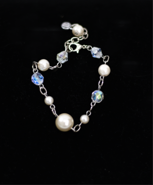 This 7-inch bracelet, featuring a 1-inch extender for the perfect fit, combines elegance with versatility. Each bracelet is designed with high-quality crystals or rich, natural wood beads, complemented by lustrous Preciosa pearls. The chain and all findings are hypoallergenic and nickel-free, ensuring lasting comfort and wearability.